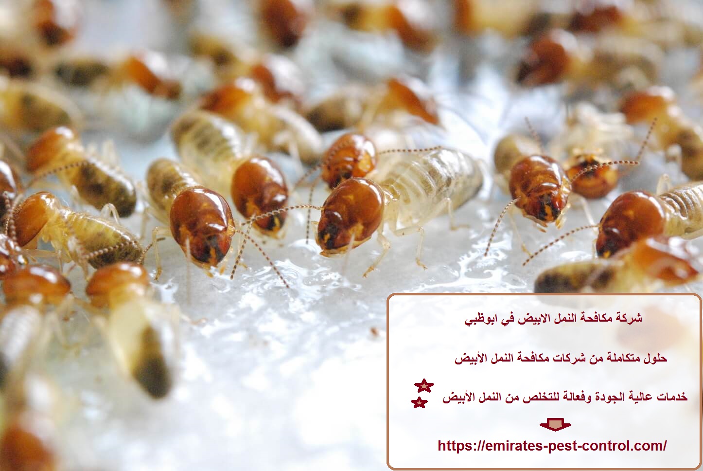 شركة الحل النهائي متخصصة في مكافحة النمل الابيض في ابوظبي، تقدم حلول آمنة وفعالة لحماية المنازل والمباني من الأضرار وضمان بيئة صحية.
